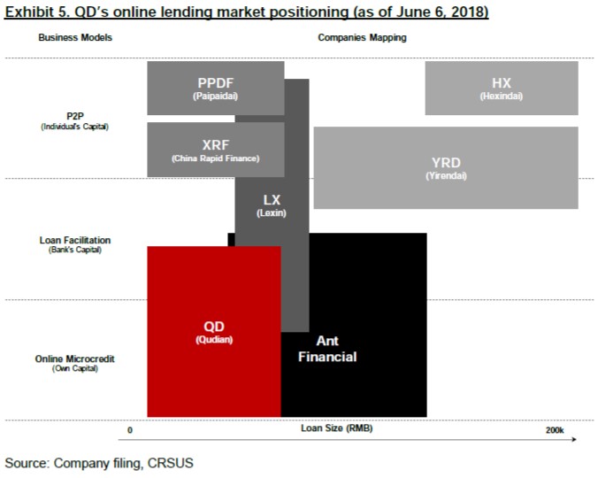 根据招股书,从活跃用户数量和截至到17年6月30日的六个月交易金额来看,趣店是中国最大的小额现金信贷产品互联网提供商,它关注的是持续时间短、交易频率高的小额信贷。在这6个月内,趣店为700万借款人提供了服务,自2014年4月成立以来至2017年6月30日,它促成的交易金额为753亿元(111亿美元)。其在用户基础、交易数量和信贷数量方面采用规模经济策略,用以维持较低的单位成本,并通过更多的用户参与来收集数据同时交易完善风险管理模型,从而实现信贷的支付能力。