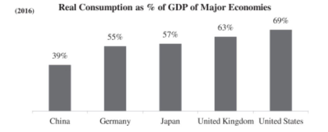 图2.4.1:世界主要经济体的实际消费占GDP比重(来源:趣店招股书,2017)