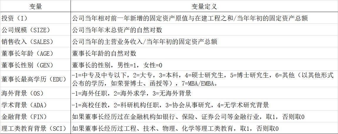 本文研究的是在ETC行业经历巨大政策红利及现金流充沛情况下董事长个人特征与公司投资之间的内在关系。模型建立(1):