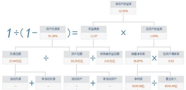 从前两部分资产负债表和损益表中我们了解到了建行整体财务及资产的状况,在本部分中我们运用杜邦分析法纵向分析建行的盈利能力,同时横向对比四大行的杜邦财务指标,进一步地探究其盈利能力在行业中的位置。