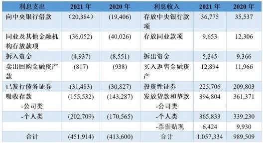 表8 建设银行2021和2020年度利息支出和利息收入数据