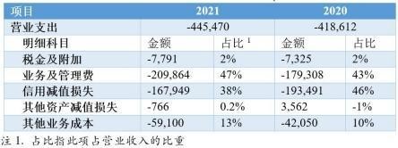表9 建设银行2021和2020年度营业支出数据(人民币,百万元)