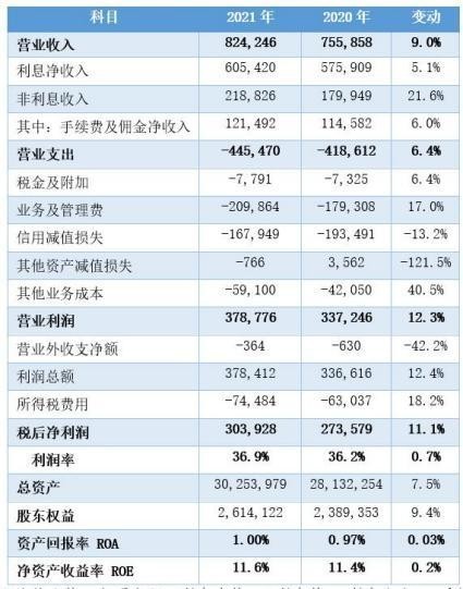 表6 建设银行2021与2020年度利润表数据 (单位:人民币,万元)