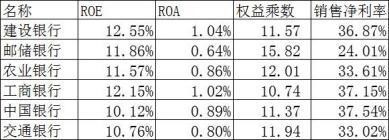 我们横向对比了六家大型国有商业银行的四个核心杜邦因子,见表13。建行的ROE和ROA是最高的,也证明了其综合盈利能力最强。同时,权益乘数处于中等水平,风险控制有待进一步的加强。