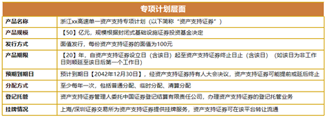 选择该高速公路作为底层资产的优势:一是资产质量较高,底层项目区位优势突出,财政实力较强,途经广州、杭州和武汉等中心城市,人口流动频繁。二是项目盈利能力强,单公里通行费收入较高,盈利能力较强,披露预测内部收益率的IRR不低于6%。