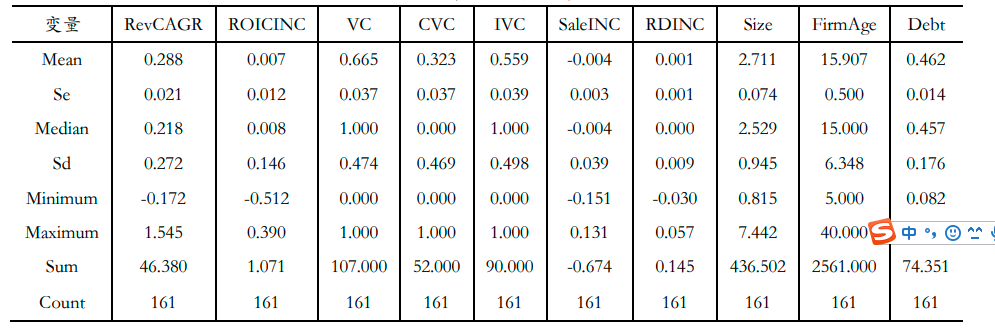 本研究从烯牛数据库中选取A股上市的消费行业的公司,并通过拉取上市前投融资历程来判断公司是否获得风险投资机构的投资和风险投资机构的性质。再通过万得数据库获取其他变量的数据,剔除数据缺失、在新三板和北京证券交易所的上市公司后,最终得到了161个观测样本。