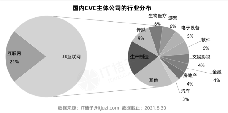 图4 CVC主体公司的行业分布情况(图片来源:IT 桔子)