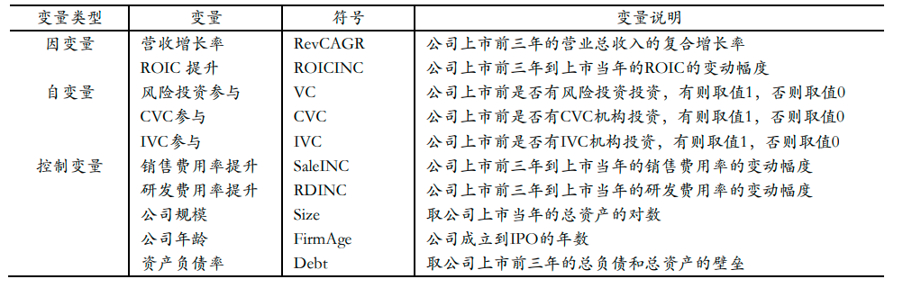 本研究共选取了10个变量,数据来源为万得数据库。风险投资类型通过手工判断投资方性质获取到的。