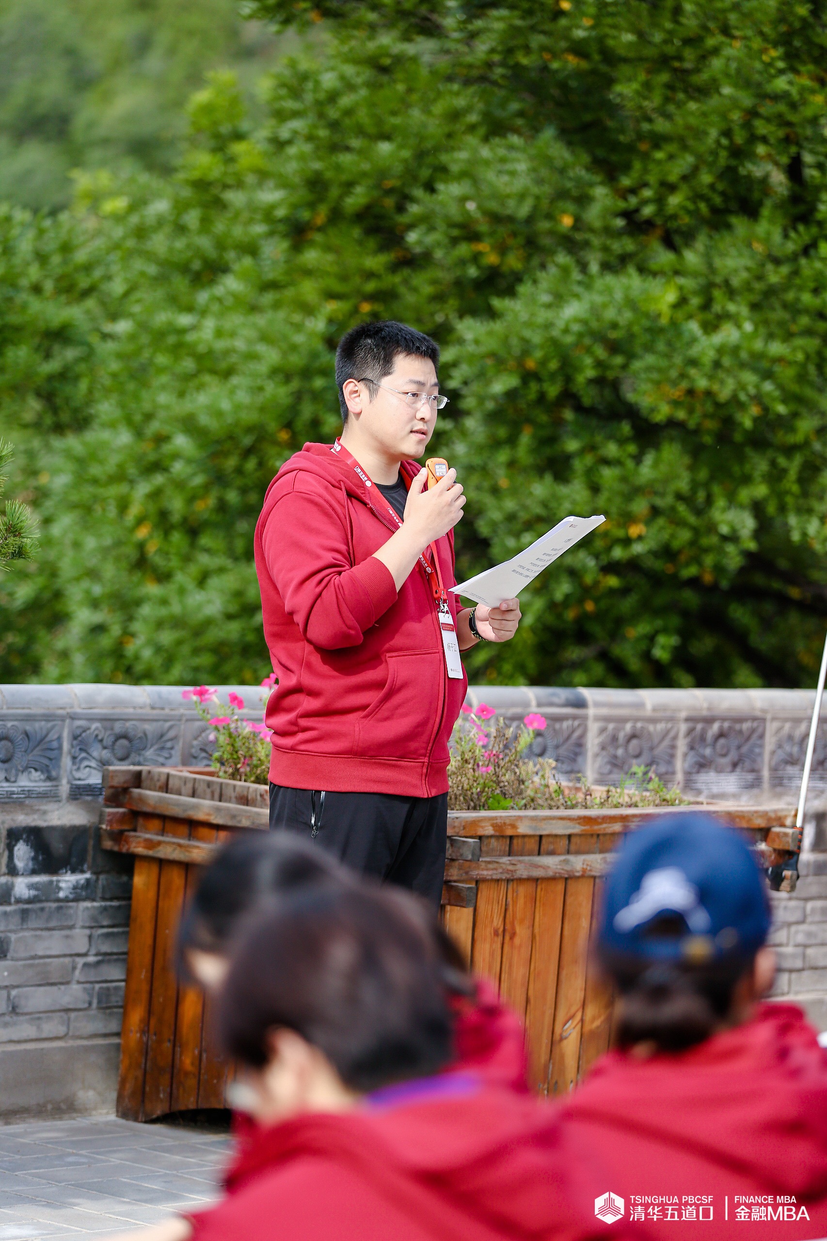 随后,校友办主任、教职工第一党支部书记张伟分享了自己作为五道口师兄对“自强不息、厚德载物”的清华精神以及“不怕苦、敢为先、讲团结、重贡献“的道口精神的理解。他表示校友办将继续秉持联络校友、服务校友、促进校友和学院共同发展的职能,为同学们做好服务;同时也希望校友办能通过协助交流的形式,帮助MBA项目实现跨项目的校友间交流和融合。他再次热烈欢迎金融MBA2019级同学们成为五道口一家人,也希望大家好好珍惜在五道口两年的学习时光。