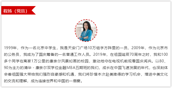 在中华人民共和国成立70周年这一举国欢庆的日子里,怀着无比激动的心情,清华-康奈尔双学位金融MBA 2019级临时党支部与老师和同学们在首次抵达纽约伊萨卡的当天齐聚一堂为祖国庆生。在海外学习的同学们齐声高唱庄严的国歌、观看雄伟的国庆阅兵,大家无不感受到祖国的强大和作为中华儿女的自豪感,也更加坚定了在未来课程学习中的决心和信心。