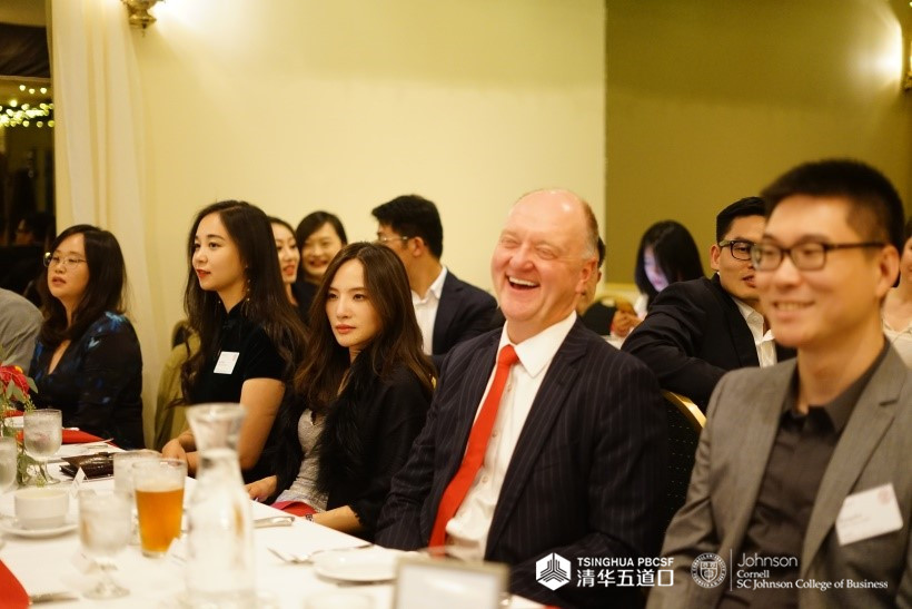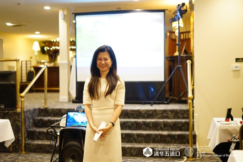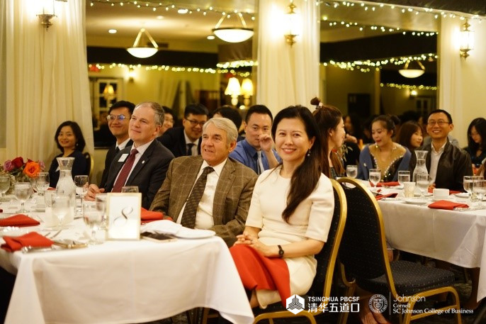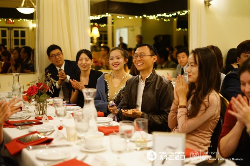 美国东部时间晚上18点整晚宴正式开始。康奈尔大学约翰逊商学院中国事务院长陈雅如主持晚宴,并向同学们热情介绍了参加本次晚宴的嘉宾:康奈尔大学约翰逊管理学院院长马克?尼尔森(Mark Nelson),康奈尔校友、中国项目的捐赠人吉米?摩根(Jim Morgan),康奈尔大学SC约翰逊商学院副院长兼学术事务主任安德鲁?卡罗伊(Andrew Karolyi),康奈尔大学约翰逊商学院会计系主任罗伯特?利比(Robert Libby),康奈尔大学约翰逊管理学院资产管理校友讲席教授圣吉夫?卜哈吉(Sanjeev Bhojraj),康奈尔大学商学院金融系主任大卫?伍(David Ng),康奈尔大学约翰逊管理学院管理与组织实务教授瑞莎?米希(Risa M. Mish)、康奈尔大学约翰逊管理学院会计学副教授左罗等多位康奈尔大学教授、校友及学院工作人员。陈雅如在简短的致辞中对同学们的本次赴美学习进行了总结,并对大家取得的成绩给予了肯定和赞扬。