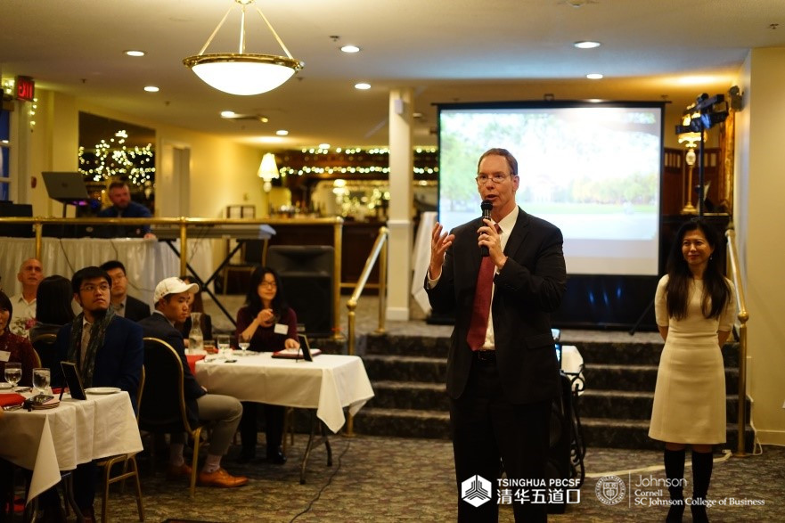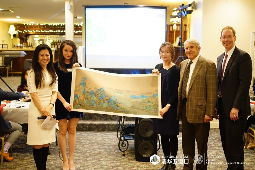 随后,康奈尔大学约翰逊管理学院院长马克?尼尔森致辞,对大家顺利完成本次赴美学习表示了祝贺,期待与大家在中国再相聚,并热情地邀约大家在明年春季重返康奈尔。吉米?摩根校友作为对我们项目最大的支持者,在致辞中与大家回顾了他与中国的不解情缘,表达了他对项目成长和成就的祝贺与喜悦之情,同时也表示了对同学们的殷切盼望和祝福,希望大家未来能够取得更多的成就。而同学们为了表达感谢,特意向嘉宾们赠送了精心准备的礼物。