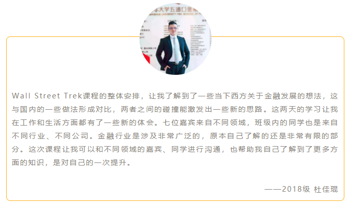 为期两天的Wall Street Trek课程已经圆满结束,然而学习之旅还在继续。在金融MBA 2018级本次赴美的后续学习中,还将迎来更多的挑战,经历更多难忘的时刻,精彩未完待续。