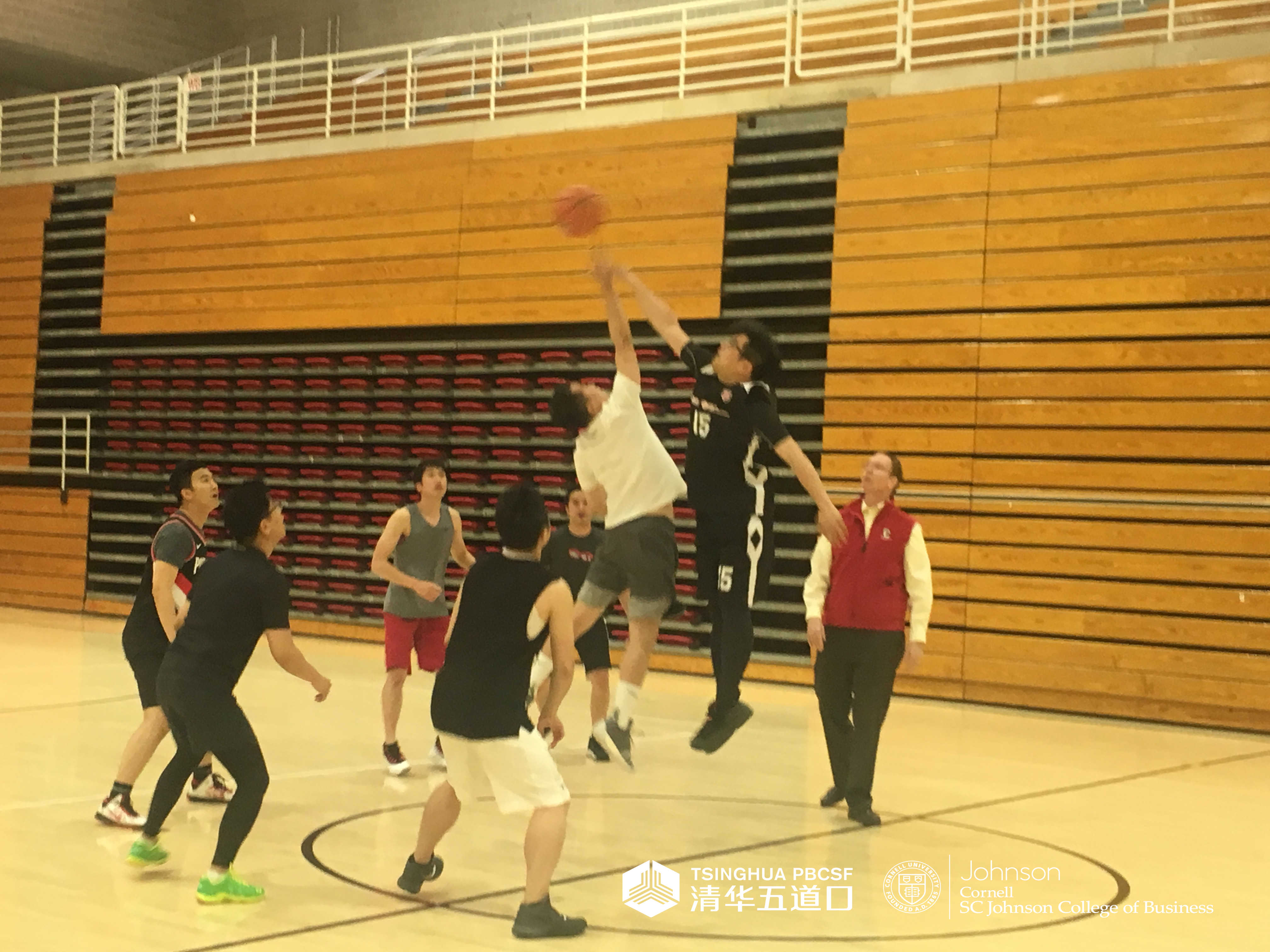 美国东部时间5月8日晚,在结束了一天的课程学习后,金融MBA2018级的同学们与康奈尔大学约翰逊管理学院Full Time MBA的学生在康奈尔校队主场Bartels Hall进行了一场友谊篮球赛。本次篮球赛受到了老师和同学们的高度关注,康奈尔大学约翰逊管理学院多名教授及院长来到现场观看比赛,并为队员们加油打气。