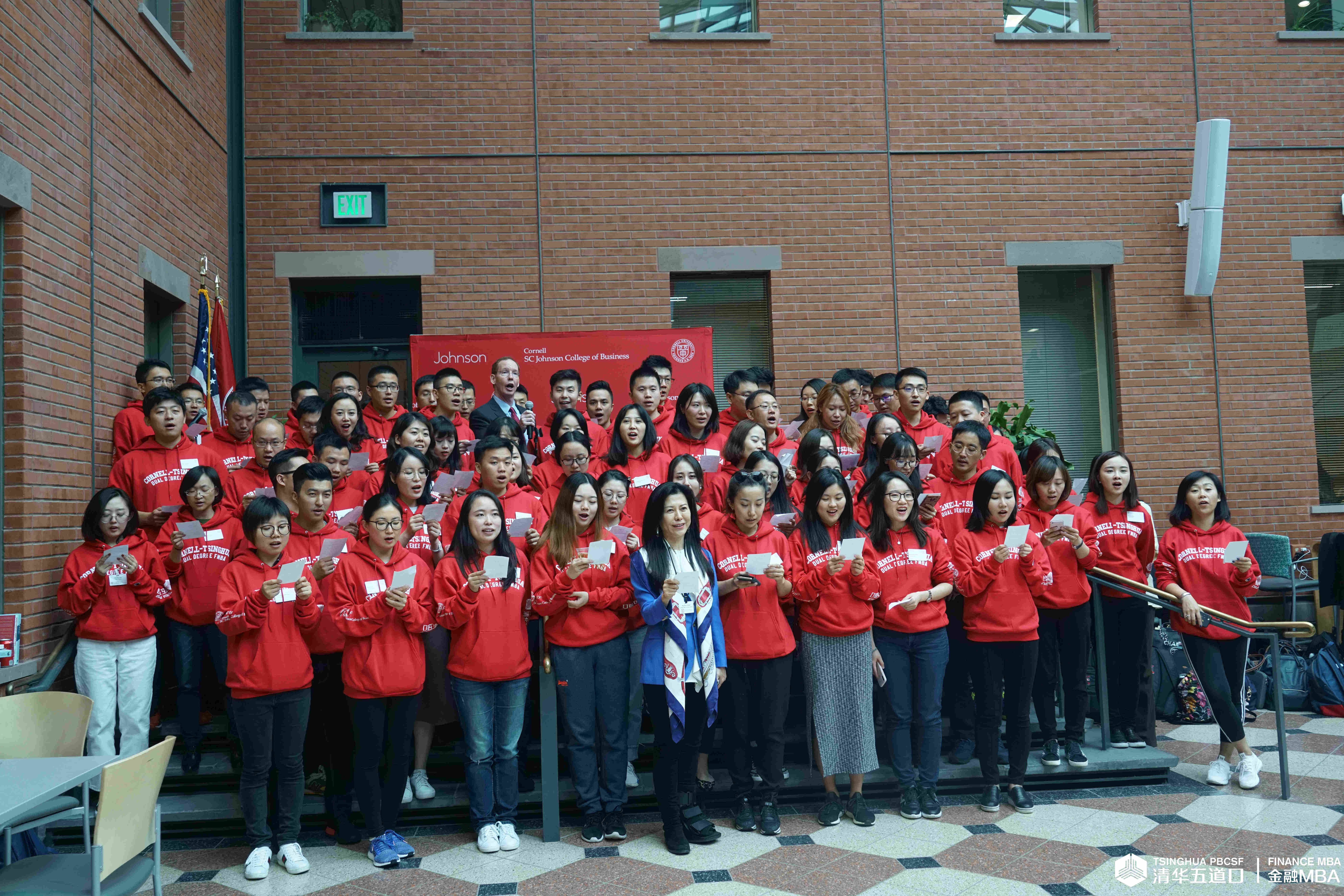 作为在康奈尔大学的一项重要活动,美国东部时间9月27日下午,在Sage Social Atrium,金融MBA2018级的同学们受到了康奈尔大学约翰逊管理学院其他老师和同学们的热情欢迎,由约翰逊管理学院院长L. Joseph Thomas亲自为大家弹奏伴奏,在约翰逊管理学院院长Mark Nelson的带领下,大家共同唱起了康奈尔大学校歌。