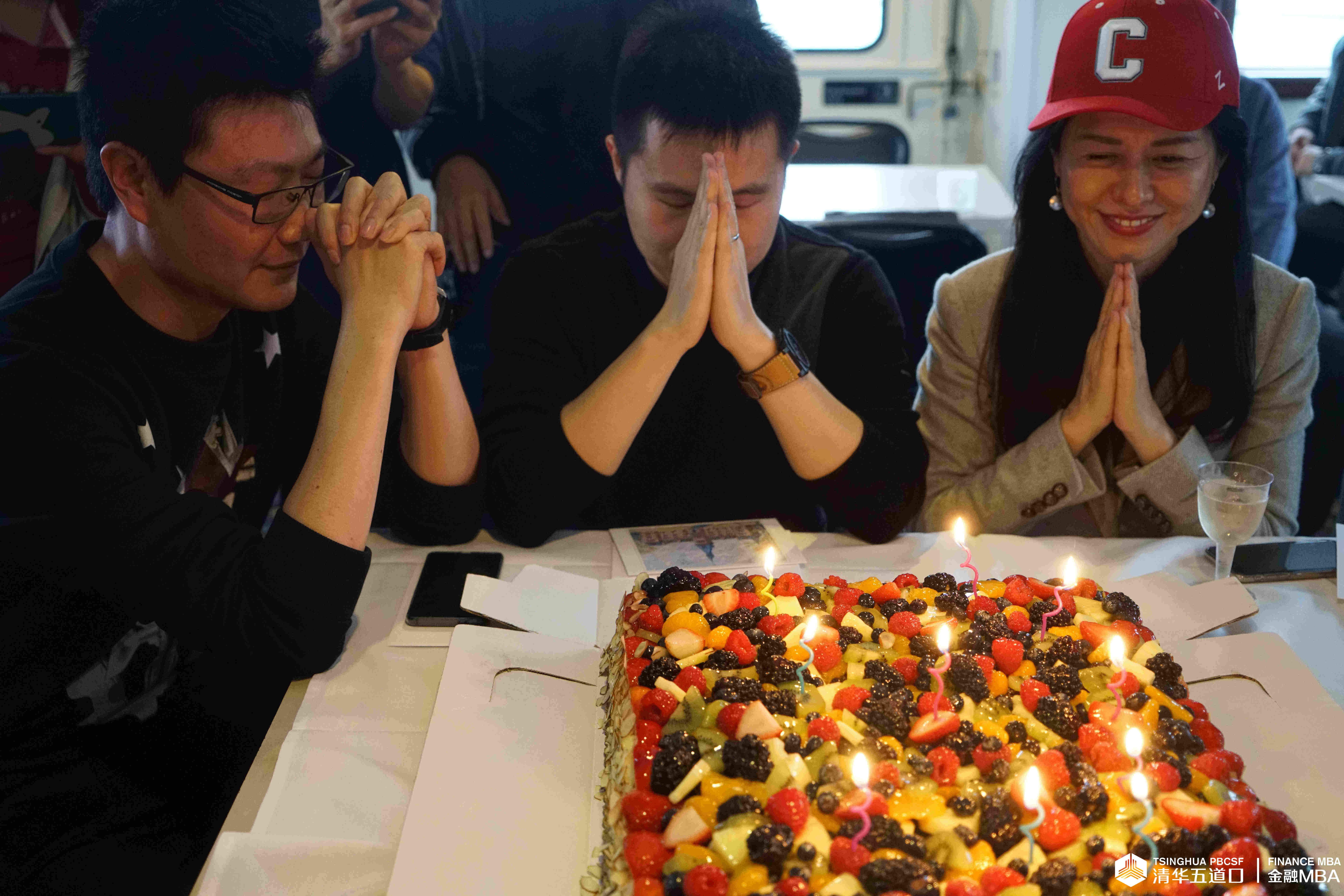 作为此次游湖的惊喜环节,大家一起为在10月份过生日的老师和同学们一起庆祝了生日,在生日蛋糕外,约翰逊管理学院院长Mark W. Nelson还亲自为他们手写了生日贺卡,送上了生日祝福,现场充满了各种惊喜、温馨、祝福与感动。远山、湖泊、落日、晚霞,船外美丽的风光与船内的载歌载舞,同学们在紧凑的学习安排中享受了伊萨卡的宁静与美好。