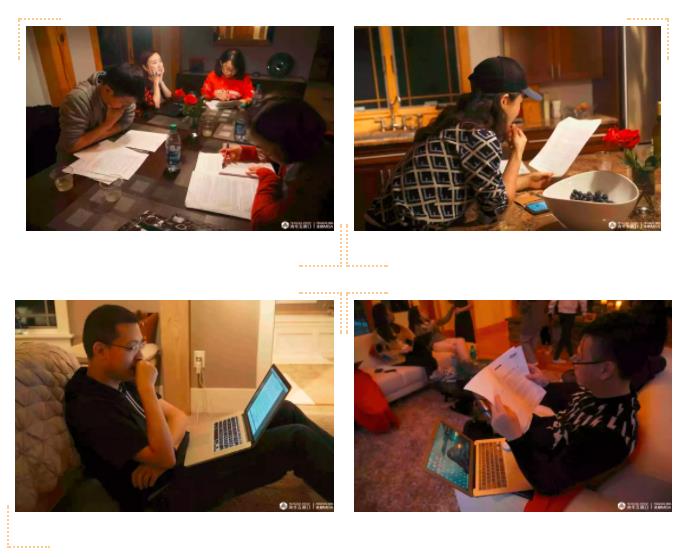 当地时间10月6日晚,在忙碌的学习安排的间隙,陈雅如教授邀请同学们到家中做客,一起享受BBQ、享受一段轻松时光。然而刻苦的同学们还是在晚餐后继续完成小组讨论、案例、作业等学习任务,在陈雅如教授家也留下了他们刻苦的身影。